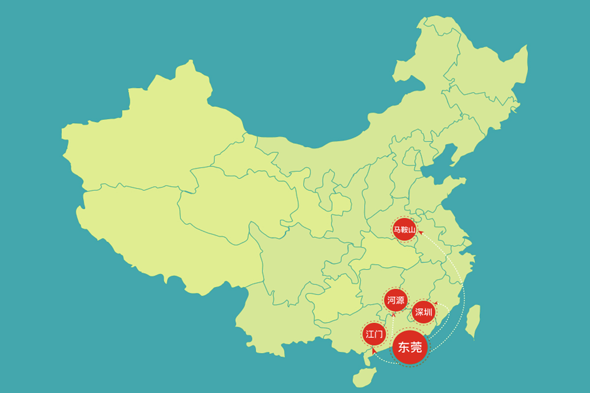集團擁有東莞、江門、河源、深圳、馬鞍山等5個生產(chǎn)基地,公司的生產(chǎn)、倉庫、辦公及宿舍等占地面積超過200畝,從業(yè)人員達1000余人。